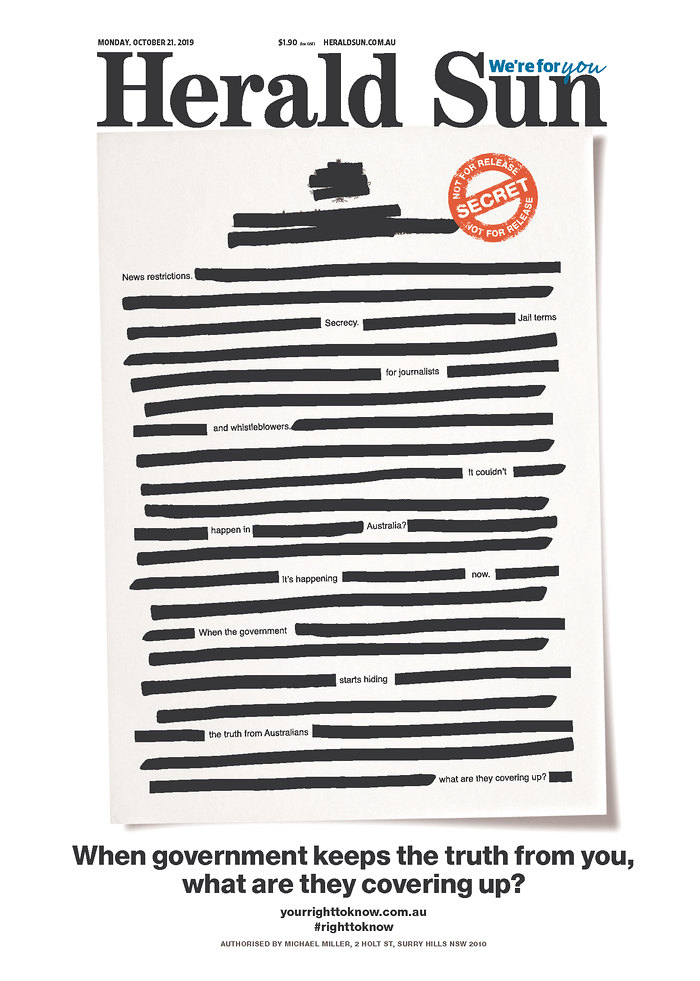 Protest fără precedent pentru presa din Asutralia. Mai multe publicații importante din Australia apar azi cu prima pagină cenzurată, cerând autorităților să asigure libertatea de exprimare și libertatea jurnaliștilor, în lumina unor evenimente recente care fac tot mai delicată această misiune.