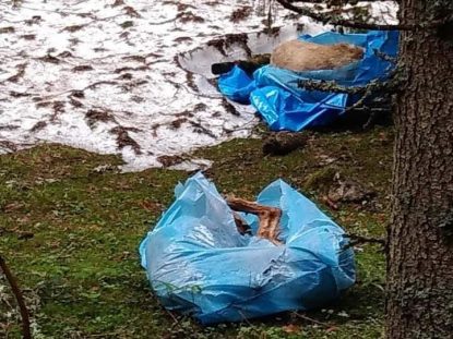 Cadavrele animalelor, înfășurate in pungi de plastic, au fost descoperite de un bărbat în zona Câmpușel. Omul spune că s-a temut că oamenii care trec pe acum pe acolo sunt în pericol pentru că animalele sălbatice ar putea fi atrase de stârvuri.
