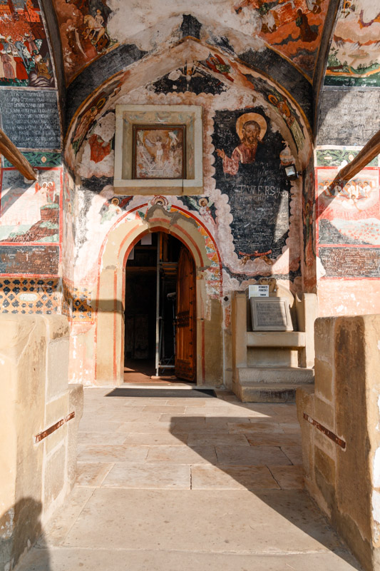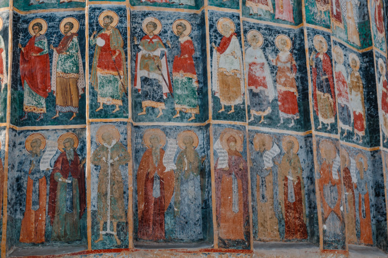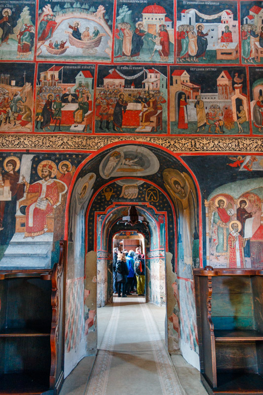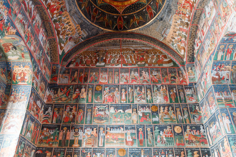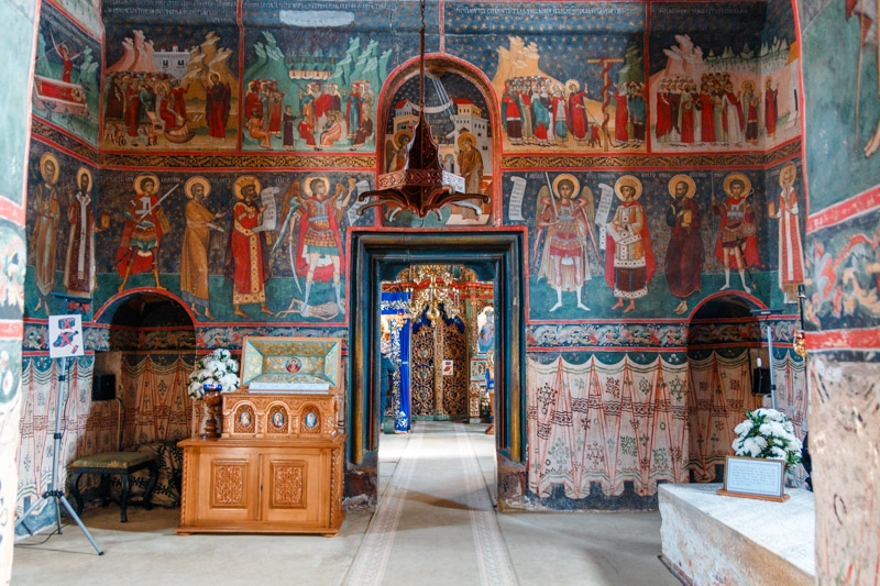 Pictura murală interioară și exterioară este de o mare valoare artistică, fiind o amplă narațiune biblică din Vechiul și Noul Testament.