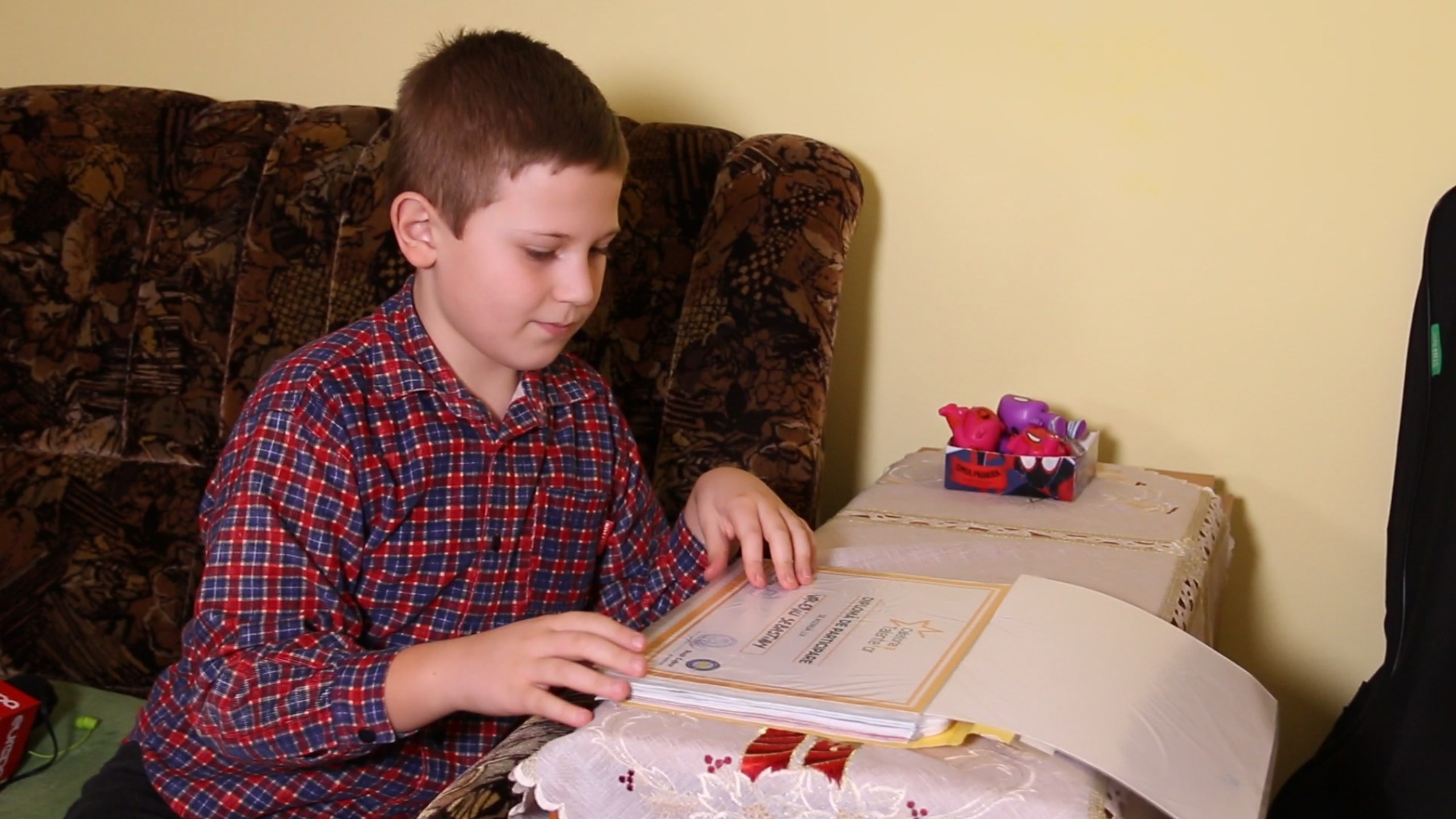 “Dacă ar fi să îți pui acum trei dorințe, care ar fi? – Ca bunicii mei și familia mea să trăiască cât mai mult, ca să ne bucurăm unii de ceilalți. Să avem eu și surioara mea sănătate, că e mai bună decât toate. Nu mai îmi trebuie altceva. Sănătatea e mai bună decât toate. – De unde știi tu lucrurile astea? – Le-am învățat! Nevoia m-a învațăt și toată lumea”, spune Sebastian, în vârstă de 10 ani.
