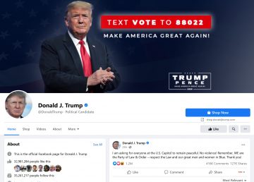 Mark Zuckerberg anunță că Donald Trump rămâne fără acces la conturile de Instagram și Facebook pentru cel puțin două săptămâni, considerând comportamentul său online ”prea periculos”. Înainte de a anunța această decizie, Facebook deja restricționase accesul actualului președinte american și eliminase unele dintre mesajele sale.