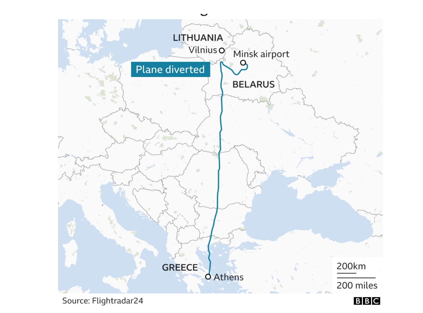 Jurnalistul disident belarus Roman Protasevici, căutat în propria ţară pentru rolul jucat în difuzarea uriaşelor proteste ale opoziţiei desfăşurate la Minsk anul trecut, nu a avut prea mult timp la dispoziţie. Minsk se află la mai puţin de 200 de kilometri de Vilnius, de aceea deturnarea avionului a durat câteva minute.