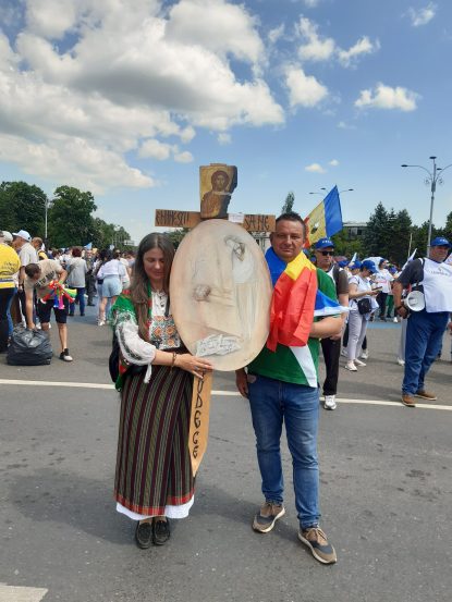 Și Mădălina Forțiu, profesoară de desen și de religie la Liceul Mihai Eminescu din Bârlad a adus o cruce pe care a scris: “Eminescu să ne judece”.
