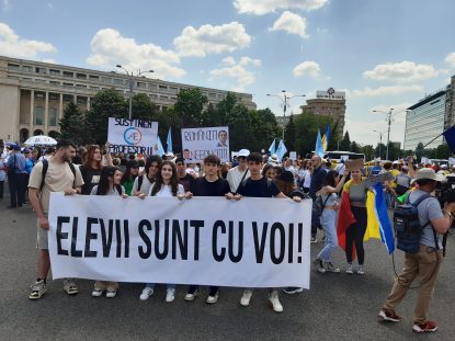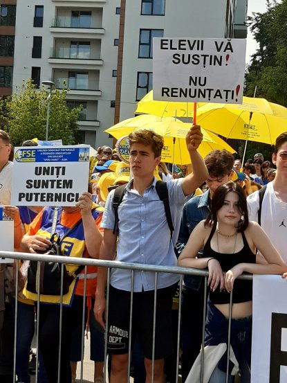 “Mă aflu aici pentru a susține toți profesorii din România să-i ajutăm să-și capete salariile pe care le merită, pentru că nu este ok ce se întâmplă. Chiar dacă se prelungește anul școlar, cât timp profesorii ies câștigați din asta, noi suntem de acord”.