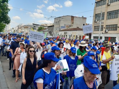 “Nu vin tineri în sistem, nu vin oameni competenți, nu au de unde pe salariile acestea mizere. Voucherele și toate pomenile pe care încearcă ei să ni le dea sunt praf în ochi, să și le ia, să plece. Vrem să-i oferim domnului președinte un voucher de bun simț și guvernanților la fel. Noi le dăm bun simț dacă vor să primească, dacă nu, să plece. Nu se mai poate așa.