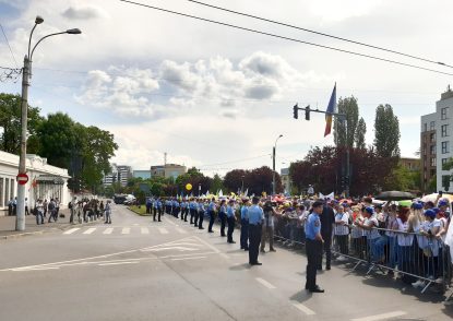 În drum spre Cotroceni, dezamăgiți de noua ofertă a Guvernului, protestatarii au scandat “Nu cedăm!” Demisia!” și au cântat “Deșteaptă-te, române!” și “O lume minunată”.