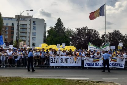 “De ce protestam astăzi? Pentru că avem salarii foarte mari, condiții de muncă extraordinare și o coaliție de guvernare care duce educația pe înalte culmi. Președintele este cel care a girat acest guvern, deci ar putea să-i convingă pe liderii partidelor de guvernământ să ne accepte doleanțele.