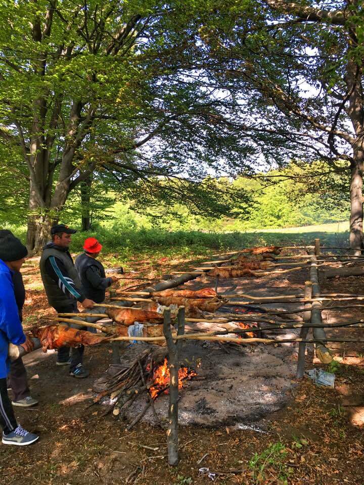 Meniul pregătit pentru acest eveniment este unul foarte simplu, cu puține ingrediente: miei fript în bruca – adică la proțap, plăcintă cu brânză şi caș proaspăt.