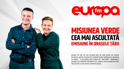 Misiunea Verde, cu care vă întâlniți în fiecare sâmbăta, de la ora 11.00, este cel mai ascultat program de radio privat în orașele țării și are o cotă de piață de 10,6%. Iar peste 1,6 milioane de ascultători sunt pe frecvențele Europa FM în fiecare zi, timpul de ascultare a depășit, în medie, 3 ore, potrivit celui mai recent Studiu de Audiență Radio, realizat de IMAS și Mercury Research în intervalul 30 august – 12 decembrie.