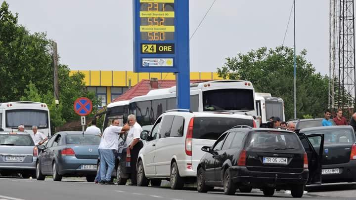Mașinile plecate spre București au fost fotografiate pe traseu. Pe Valea Oltului, de exemplu, au fost numărate zeci de autocare pe marginea drumului.