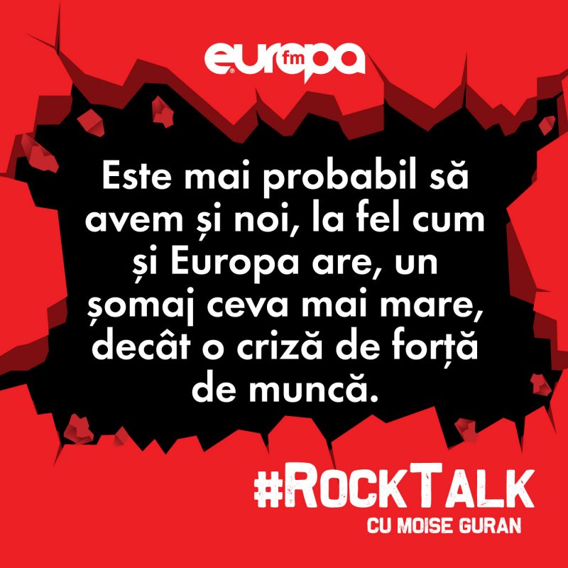 În altă ordine de idei, ceea ce încerc să vă spun este că și în acest an și în următorii, este mai probabil să avem și noi, la fel cum și Europa are, un șomaj ceva mai mare, decât o criză de forță de muncă, așa cum ne-am obișnuit de vreo 15 ani încoace.