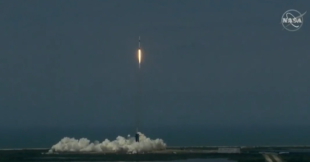Capsula Crew Dragon a fost lansată cu o rachetă Falcon 9, ambele tehnologii aparţinând companiei SpaceX, transportându-i pe astronauţii şi piloţii de încercare Doug Hurley şi Bob Behnken spre ISS, instalație aflată pe orbita Terrei, la aproximativ 400 km altitudine.