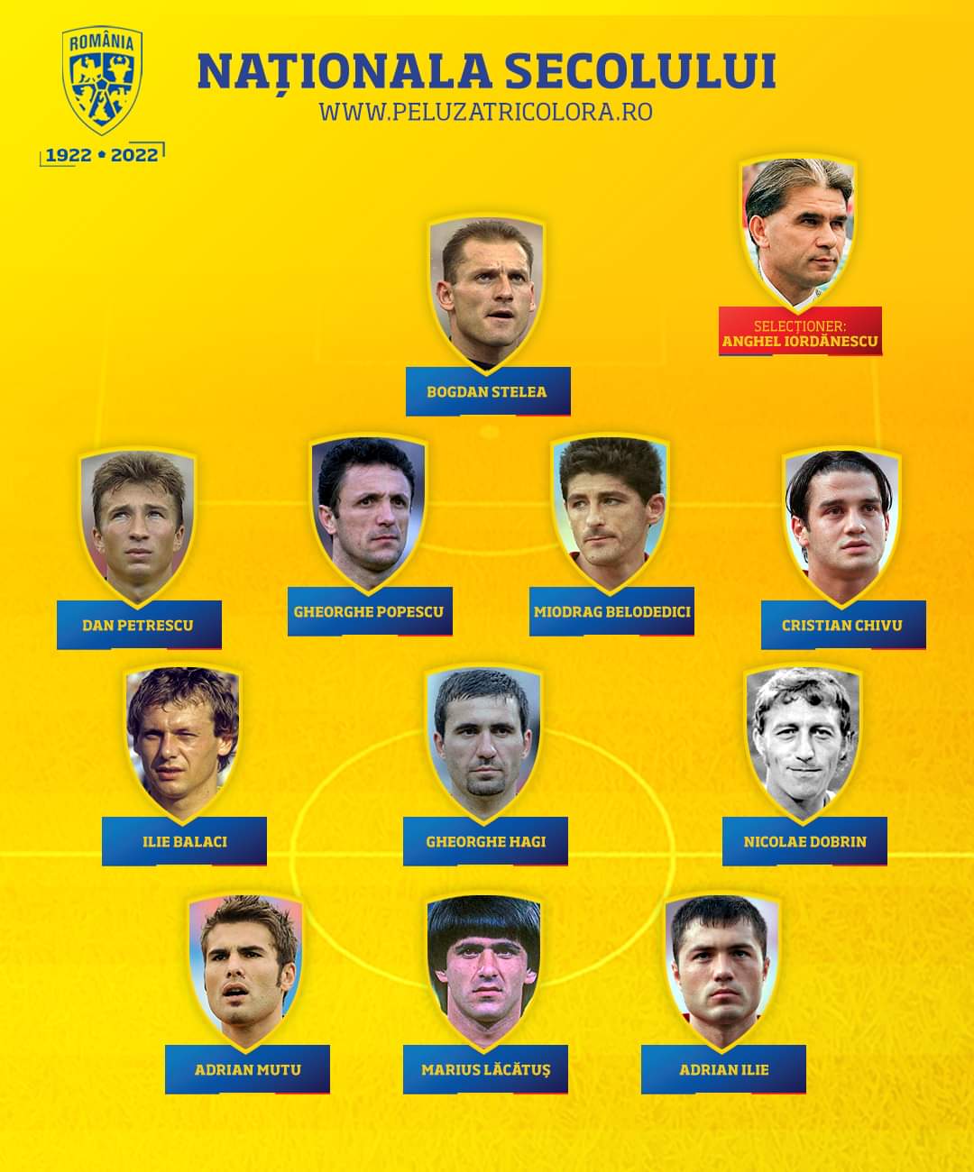 Suporterii au desemnat, prin vot, componenții Naționalei secolului la celebrarea celor o sută de ani de la primul meci oficial al tricolorilor.