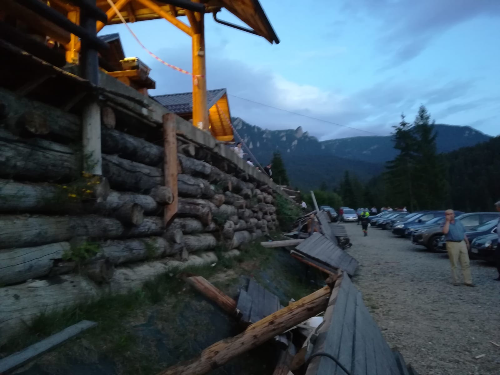 Balustrada a cedat sub greutatea celor prezenţi întrucât terasa devenise supraaglomerată.