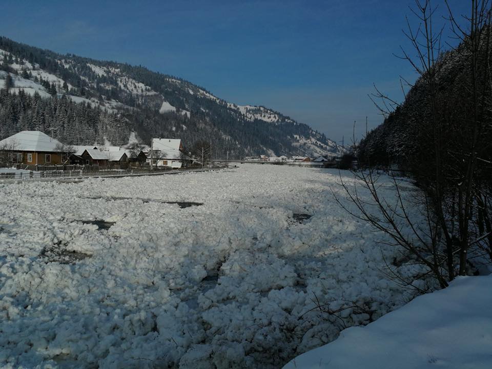 Fenomenul de zăpor amenință deja câteva gospodării iar reprezentanții ISU se află la fața locului și vor deversa controlat un baraj din zonă pentru a debloca albia râului.