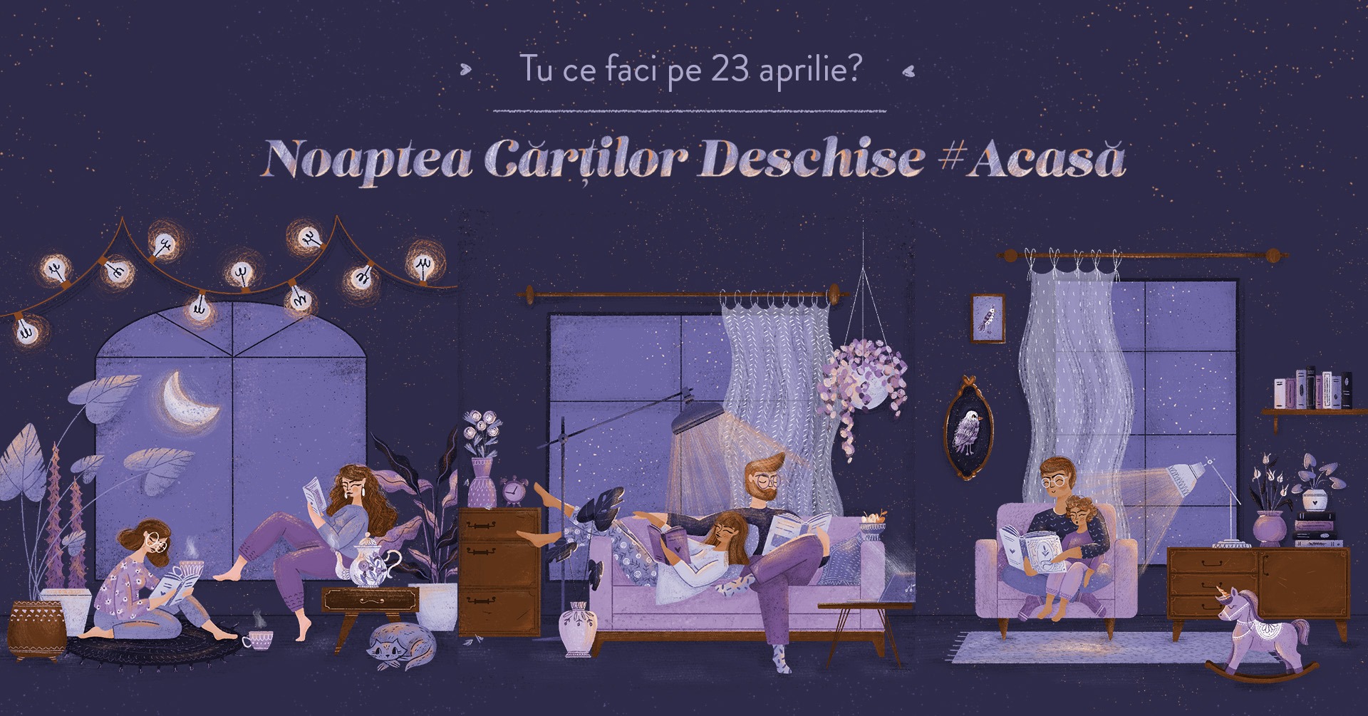 Joi, 23 aprilie, de la ora 19, toți cititorii, mari și mici, entuziaști ai lecturii, prieteni ai cărților, promotori ai culturii și educației din România sunt invitați să se alăture de #acasă unei comunități extraordinare și să împartă bucuria lecturii în cadrul unei întâlniri online cu multe surprize!