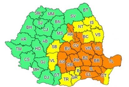 Meteorologii au emis avertizări cod galben şi portocaliu de instabilitate atmosferică (vijelii, grindină, descărcări electrice) până joi dimineaţă în judeţe din centrul, estul şi sud-estul ţării.