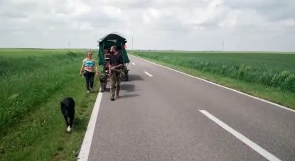 „Am întâlnit o familie de oameni foarte plăcuți, prietenoși, senini. Bănuiesc că sunt cetățeni francezi. M-au salutat în limba franceză. Au spus că se îndreaptă cu acel atelaj tras de o simpatică măgăriță și-n căruță erau patru copilași, undeva de la 3 ani până pe la vreo 9 ani”, spune Marius Cârdei, un bărbat care a vorbit cu familia de călători.