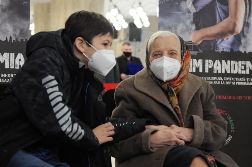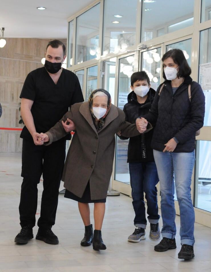 Doamna Zoea Baltag, în vârstă de 104 ani, a primit duminică, la Centrul de vaccinare de la Palatul Național al Copiilor, a doua doză de vaccin PfizerBioNTech împotriva COVID-19.