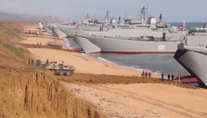 Imaginile date publicității de către Ministerul Apărării de la Moscova arată cum mai multe tancuri sunt încărcate pe navele de desant aflate pe coastele Crimeei și soldați care încarcă pe nave vehicule de transport blindate.Ministrul rus al Apărării, Serghei Șoigu, anunța joi că trupele deplasate în Vestul și Sudul Rusiei au trecut o serie de teste și scopul acestor manevre a fost obținut.