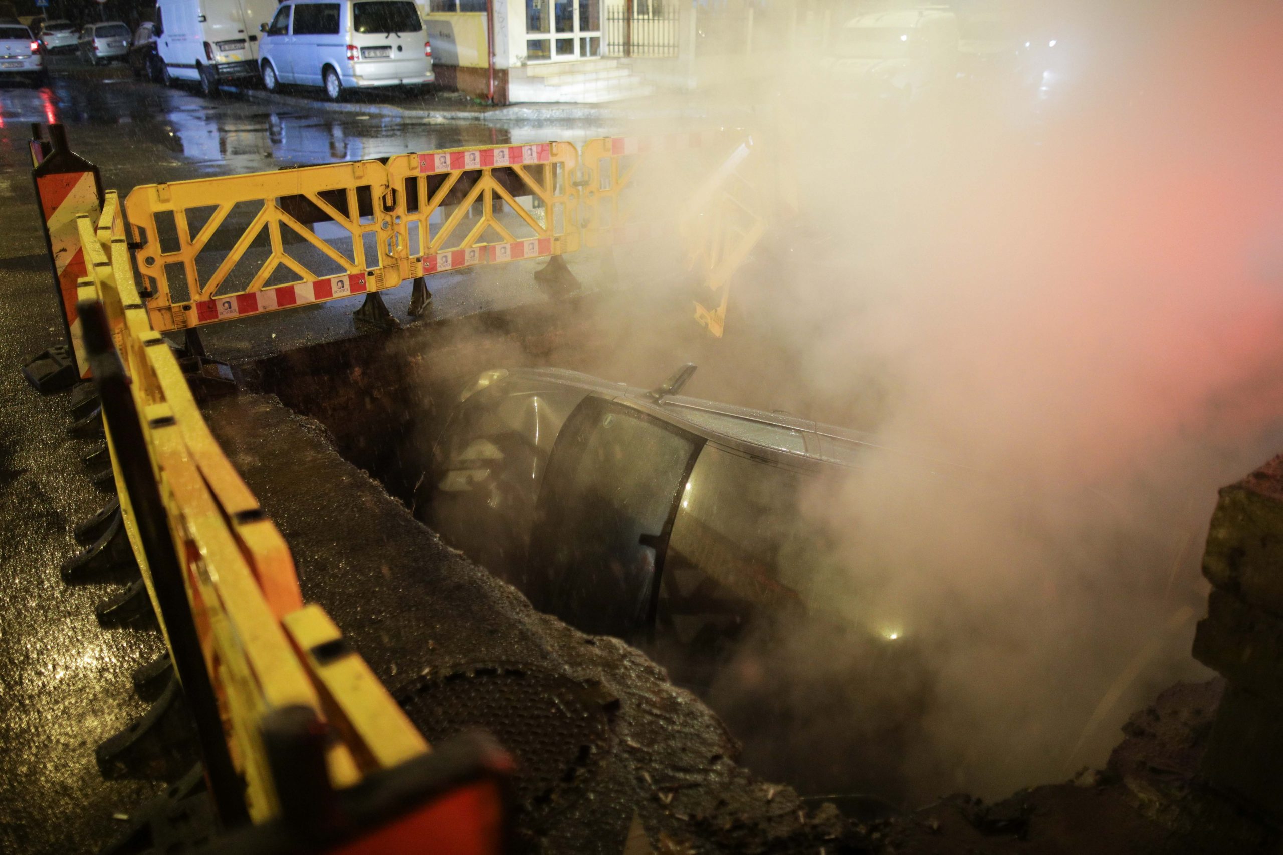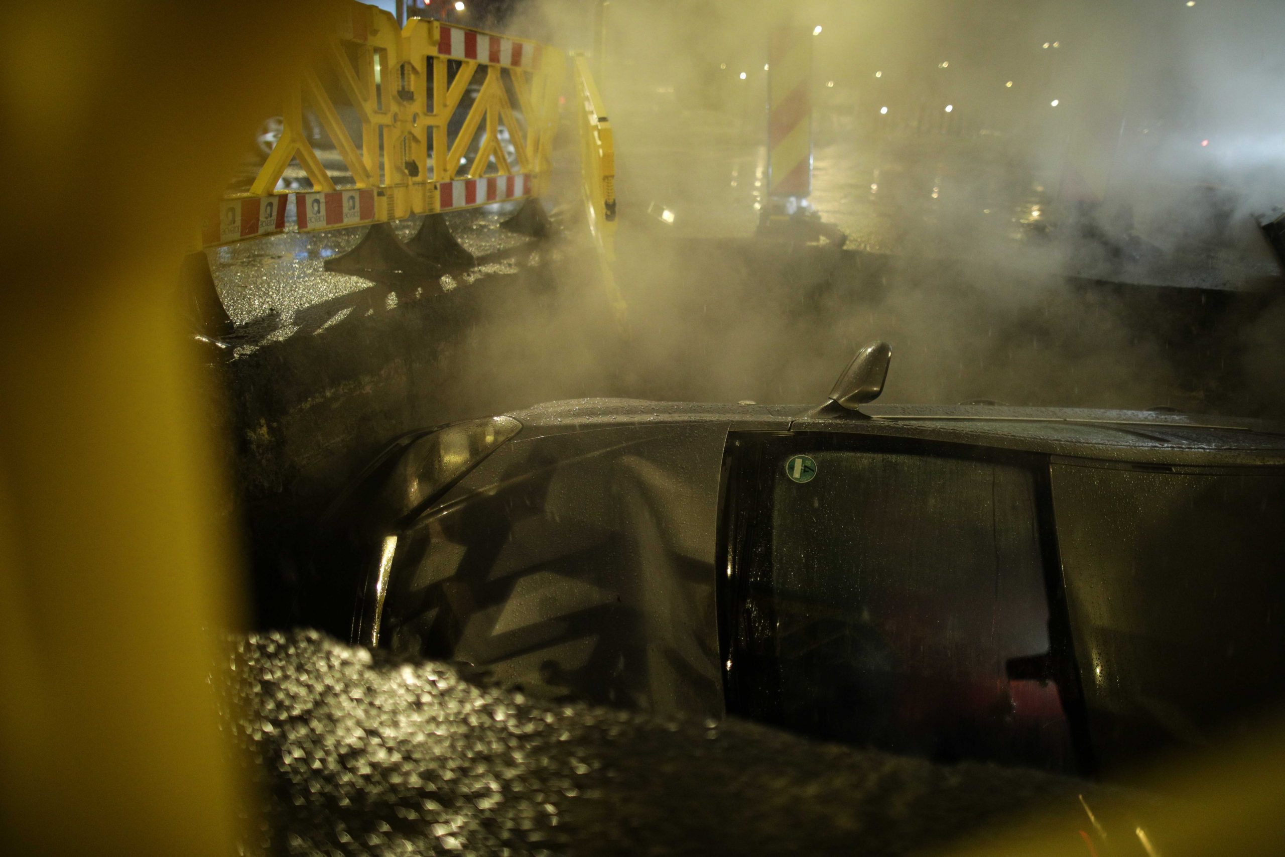 Incident mai puțin obișnuit, în București. O șoferiță a ajuns cu mașina într-o groapă unde se fac lucrări la rețeaua de termoficare. Ea a declaratcă din cauza aburului nu a văzut marcajele care atenționau asupra lucrării.