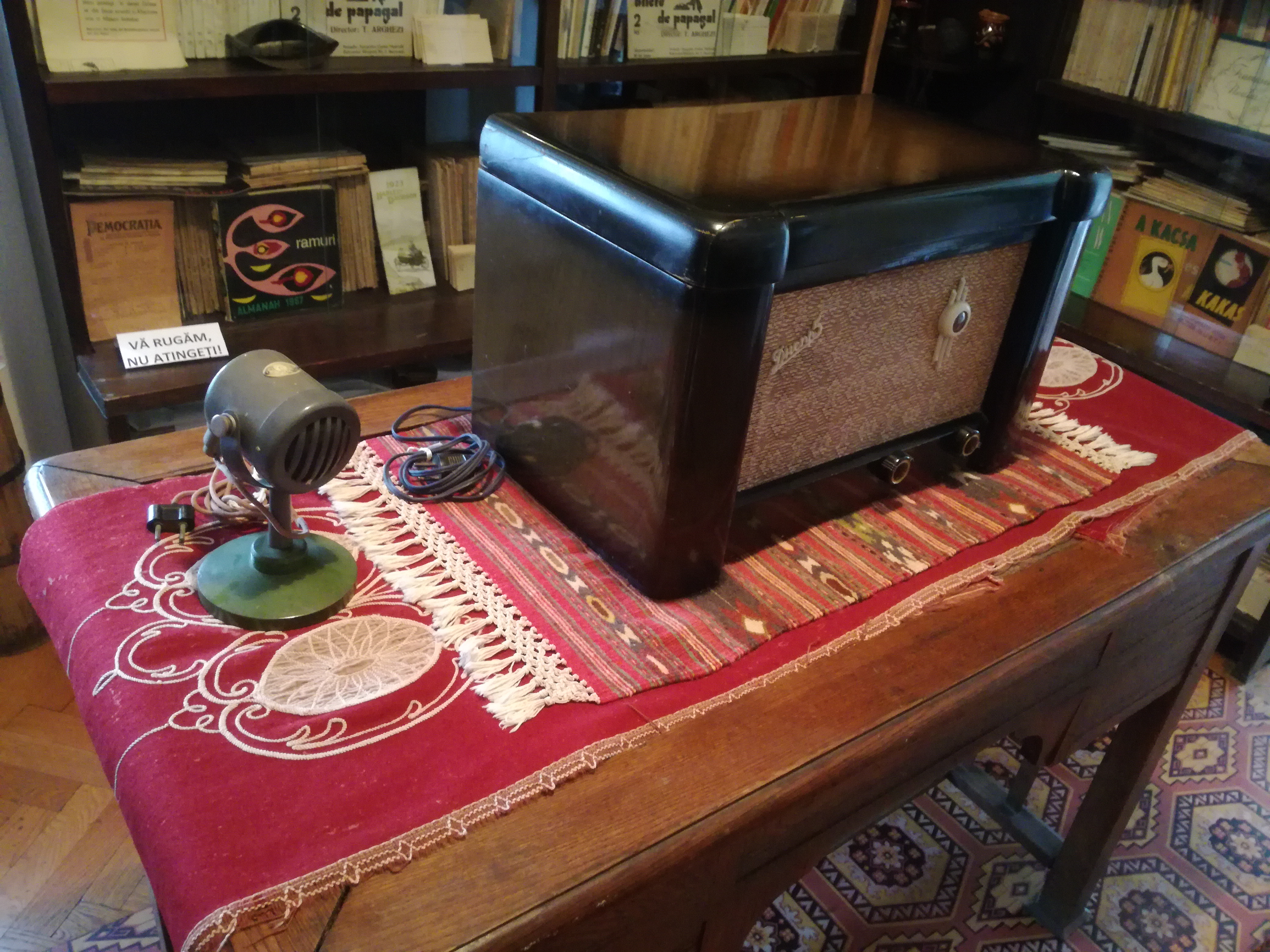 “Este marca Dnepr. A fost achiziționat de poet în anul 1956 de la Moscova, când a făcut parte din delegația de recuperare a Tezaurului. E știut faptul că nu au recuperat mare lucru. Magnetofonul face parte din creația poetului. Arghezi era foarte exigent cu opera sa și obișnuia să își înregistreze vocea la acest microfon, să vadă dacă versurile au ritm și muzicalitate. Scria câte 7-8 variante la o poezie, până când consideră că este gata. Apoi, o trecea pe curat, cu tocul.”, spune muzeograful Marieta Mihaiță.