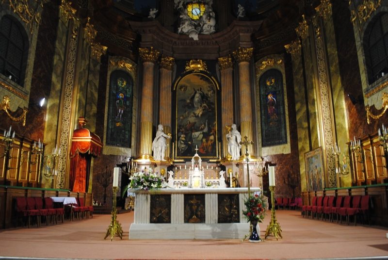 După moartea primului arhitect, construcția a fost terminată de Franz Anton Hillebrandt din Viena, care a împodobit biserica cu ornamentații în stil baroc austriac.
