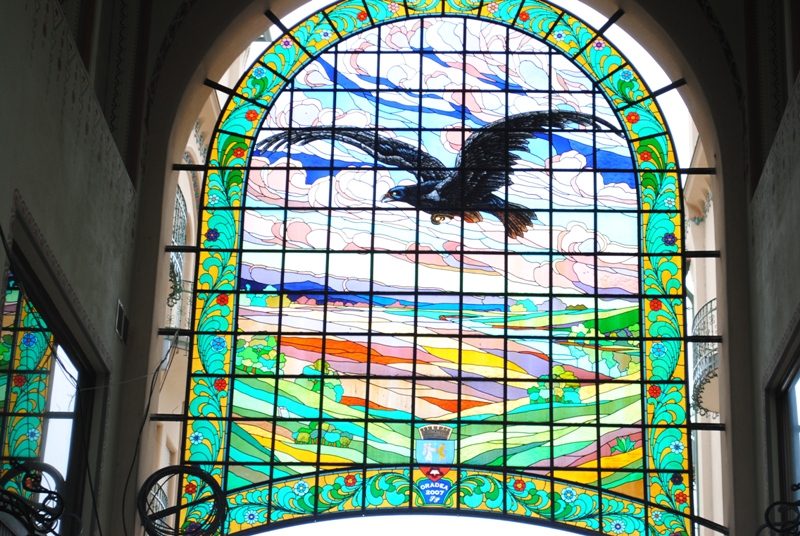 Eleganţă deosebită a clădirii culminează cu două mari vitralii ce reprezintă un vultur în zbor, simbol important în mitologia maghiară.
