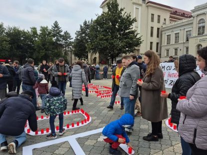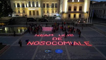 Au aprins 560 de candele cu care au scris pe asfalt: „Neam ucis de nosocomiale”.