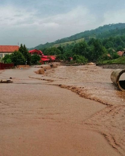 “Drumul Naţional 74A, blocat de aluviuni în urma inundaţiilor a fost deblocat parţial. În acest moment, se circulă alternativ pe o bandă”, a precizat Radu Botezan.
