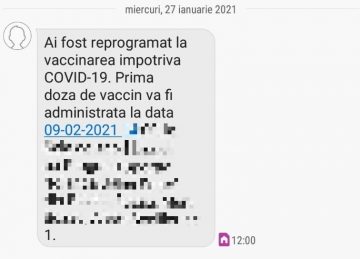 Cei reprogramați vor fi anuntați atât prin SMS cât și prin e-mail privind noile date și intervale orare pentru administrarea vaccinului anti-Covid.
