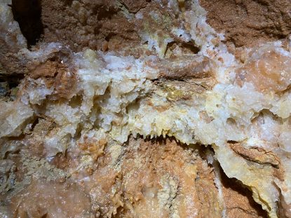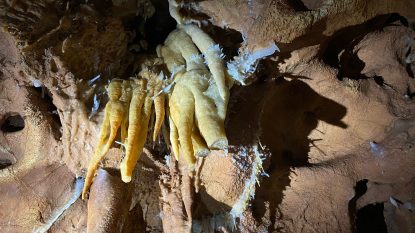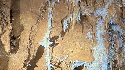 Cristalele sunt din carbonat de calciu și cresc aproximativ un milimetru în decursul a 15 ani.