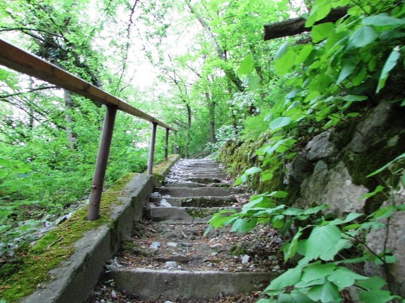 Peştera este vizibilă din drum, iar nişte scări de beton te urcă până la intrare.