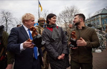 Cei doi lideri s-au fotografiat cu statuetele primite iar președintele Zelenski a scris pe Instagram că acesta este un semn de bun augur iar Ucraina va ieși învingătoare după invazia rusă.