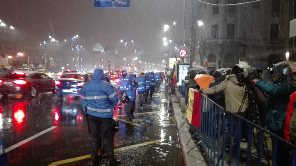 Jandarmeria s-a mobilizat pentru a interveni în cazul în care apar incidente. Jandarmii călare au fost huiduiți de manifestanți. Ieșirea de la metrou dinspre Universitate este temporar blocată de jandarmi.