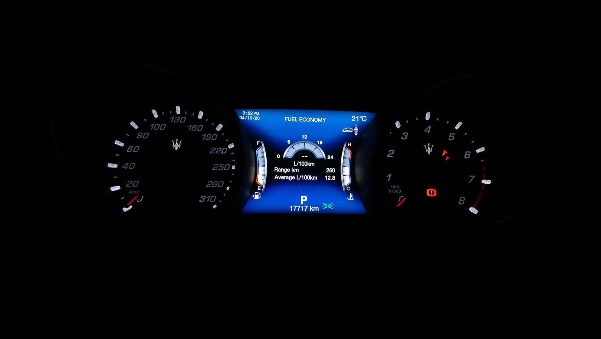 Panou de instrumente cu fundal Albastru Maserati, iluminat cu lumină albă și cu display multifuncțional de 7”