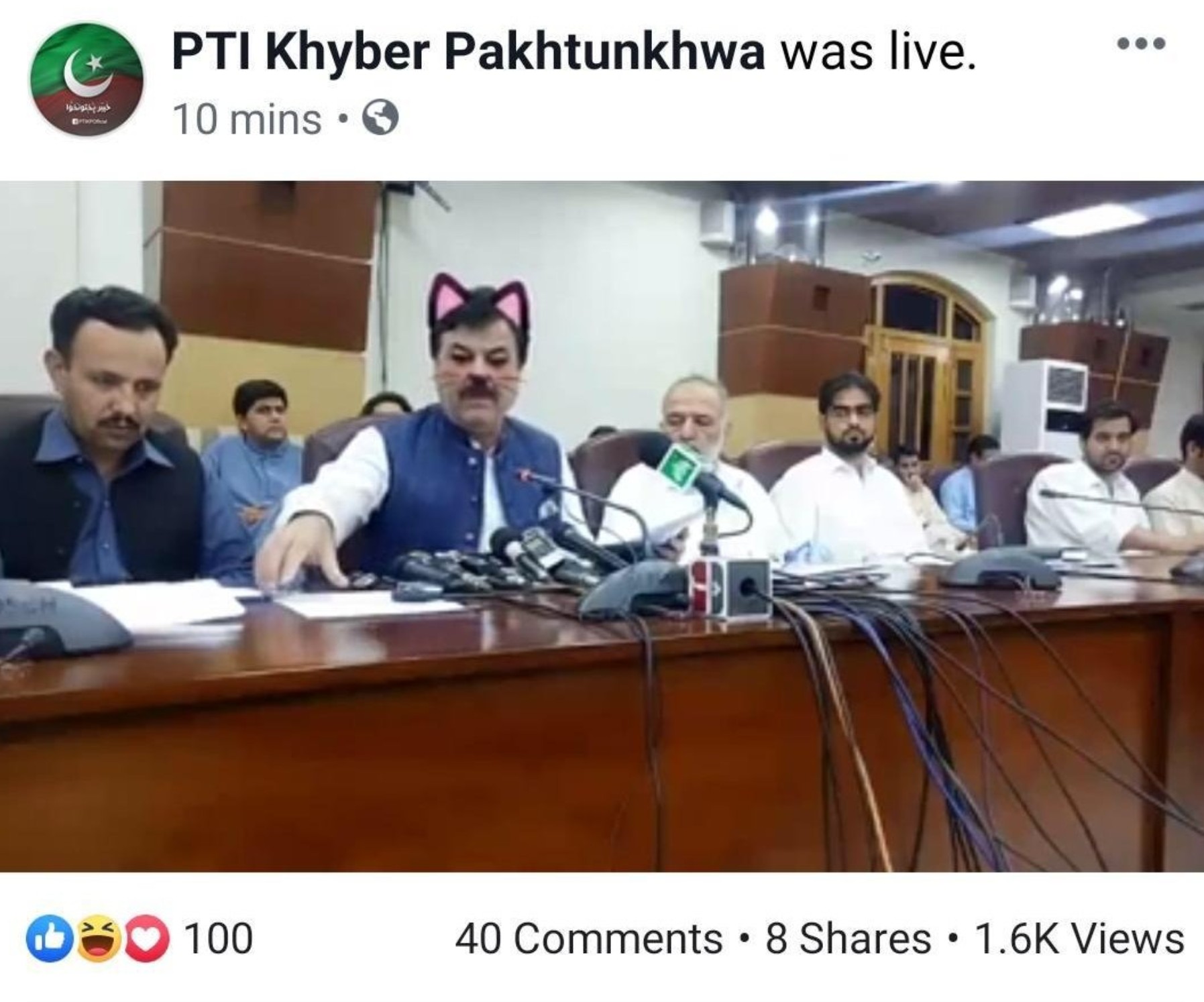 O întâlnire cu presa a reprezentanților guvernului dintr-o provincie a Pakistanului a stârnit hohote de râs pe rețelele de socializare. În imaginile transmise live pe Facebook, politicienii pot fi văzuți cu urechi de pisicuță și mustăți.
