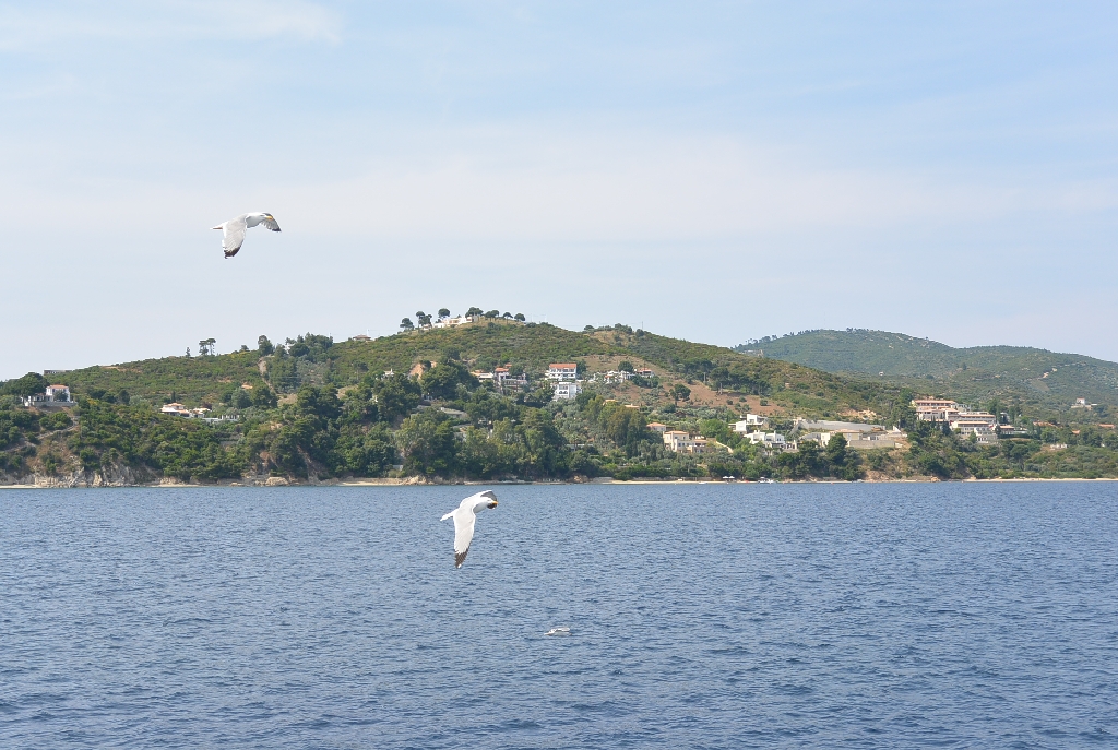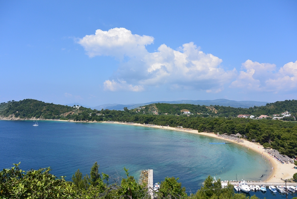 Insula Skiathos, deşi nu este prea mare, are 12 kilometri lungime şi vreo 6 laţime, are loc suficient pentru nu mai puţin de 69 de plaje, fiecare având specificul său. Cel mai înalt punct din Skiathos este la 411 metri, însă când ajungi acolo ţi se pare că ai atins un mic Everest. Priveliştea asupra colinelor împădurite, dar mai ales asupra oraşelor şi a mării albastre este dincolo de cuvinte.