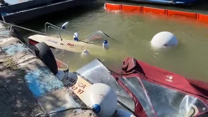 Portul Sulina: 3 ambarcațiuni s-au scufundat azi după ce un remorcher ce transporta o macara a avariat 2 pontoane și 5 ambarcațiuni | GALERIE FOTO