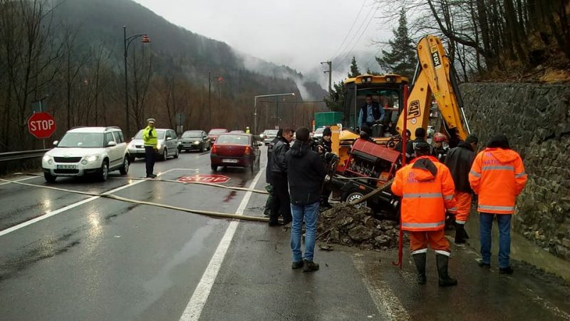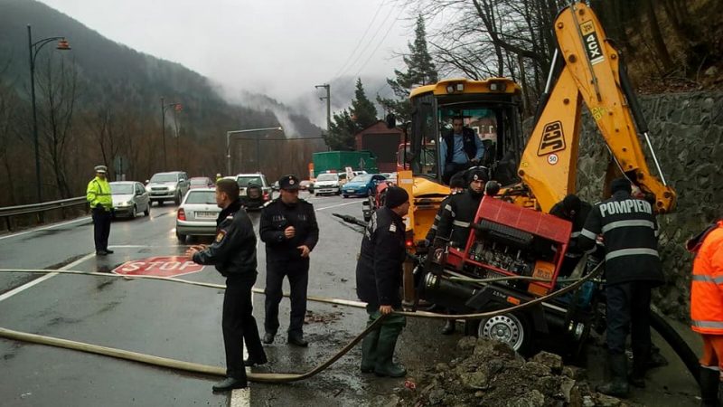 În judeţul Prahova, traficul rutier pe DN 1 Ploieşti – Braşov se desfăşoară îngreunat la km 126, pe raza staţiunii montane prahovene Sinaia, din cauza apei de pe carosabil (ca urmare a ploilor).