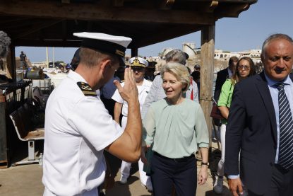 Președinta Comisiei Europene a ajuns pe insula Lampedusa și a vizitat, alături de premierul Italiei, un centru care găzduiește migranții sosiți pe insulă. Cei doi oficiali au mers apoi în portul în care sunt ancorate zeci de bărci improvizate pe care s-au îmbarcat refugiații.