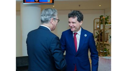 La Haga, Nicușor Dan a avut mai multe întâlniri bilaterale cu omologi și șefi de guverne din alte state. Printre ei, șeful statului a discutat cu prim-ministrul Regatului Unit al Marii Britanii, Keir Starmer, cu președintele francez Emmanuel Macron și a spus că secretarul de stat american Marco Rubio l-a felicitat pentru victoria la alegerile prezidențiale.