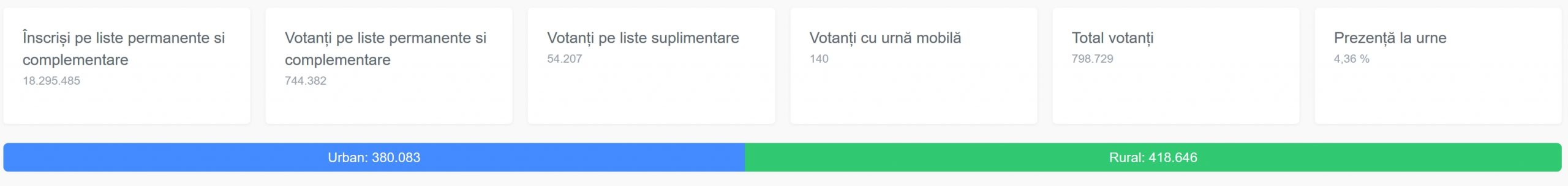 Prezența la vot este crescută în primele ore ale dimineții, comparativ cu alte alegeri locale. 4,36% este prezența la vot la ora 9. Cei mai mulți votanți sunt până acum din mediul rural. Vârstele votanților care au ținut să-și exercite acest drept în primele două ore ale dimineții este preponderent între 45-64 de ani și peste 65 de ani.