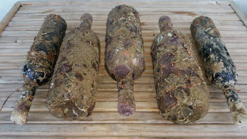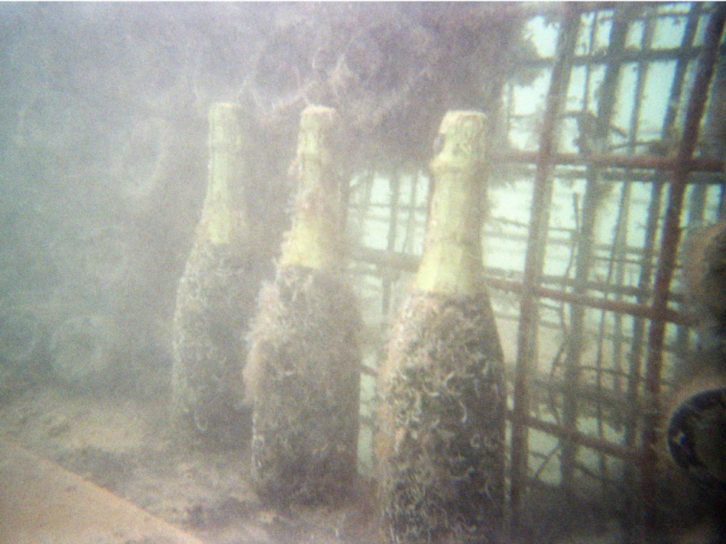 Sticlele cu vin sunt acoperite timp de 700 de zile de corali şi scoici.