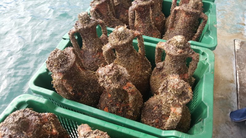 Ulterior amforele sunt stocate în cuşti subacvatice cu lacăt, pentru a descuraja alţi scufundători să se servească din produsele cramei.