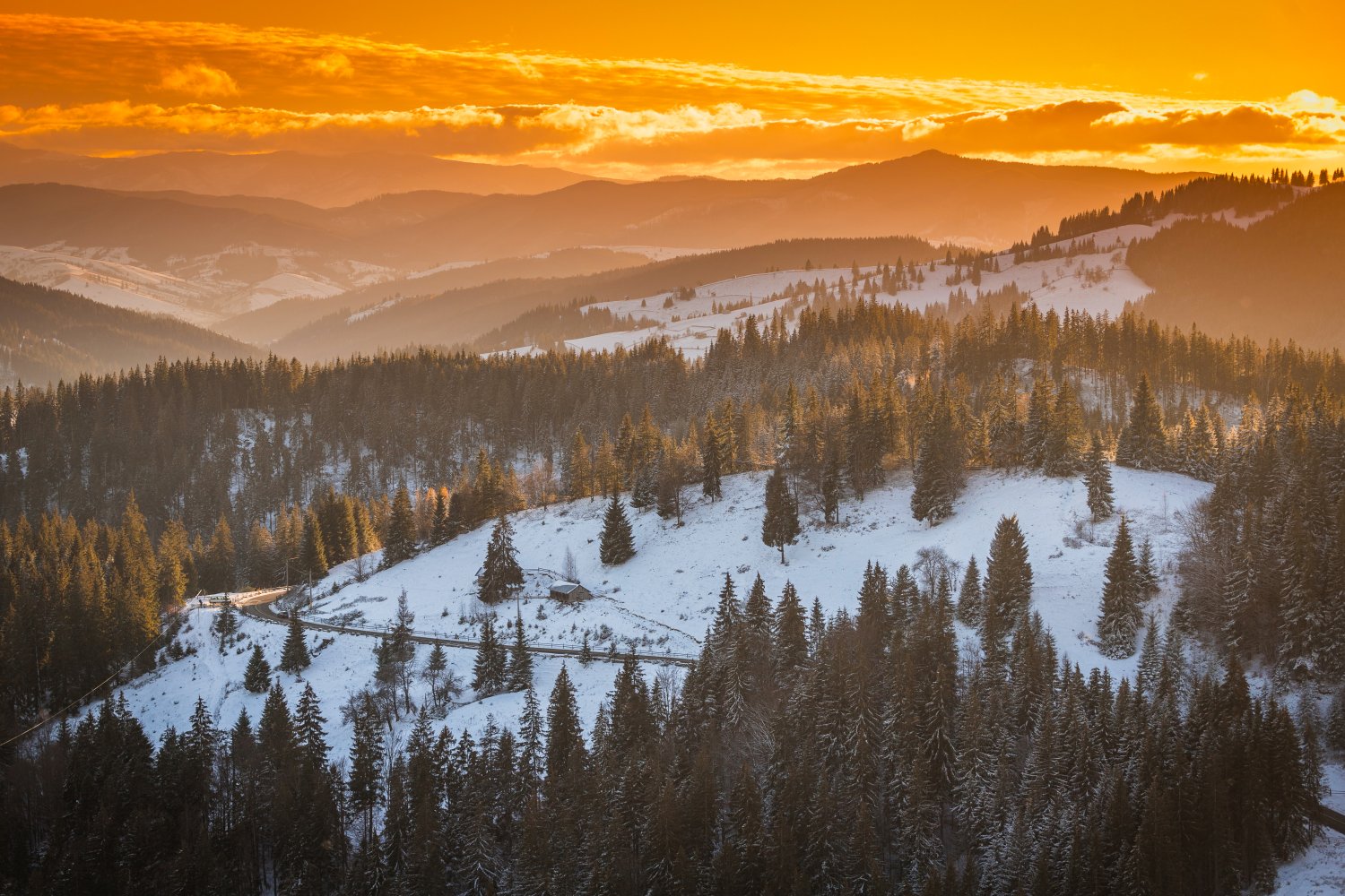 Pasul Ciumârna, care traversează Obcina Mare, leagând Valea Moldoviței de Podișul Sucevei, a fost acoperit de zăpadă în weekendul trecut. Prima ninsoare din această iarnă căzută în Pasul Ciumârna a fost surprinsă în imagini de fotograful Cătălin Urdoi: