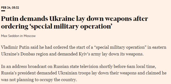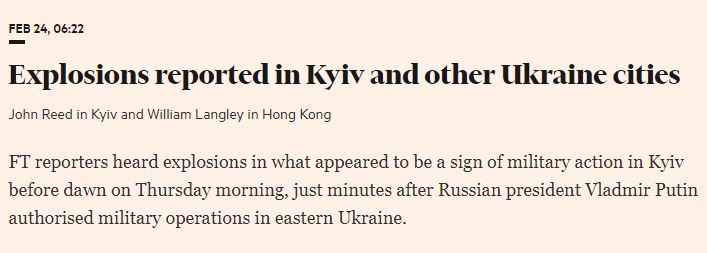 Jurnaliștii de la Financial Times au făcut noapte albă pe 24 februarie. Înainte ca Putin să anunțe invadarea Ucrainei, pe site-ul Financial Times au fost postate mai multe update-uri pe tema unui posibil război ce urma să aibă loc.