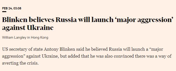 La 03.08, aceștia citau o declarație de-a lui Anthony Blinken, secretarul de stat al SUA, „care credea că Rusia va lansa „o agresiune majoră” în Ucraina, dar a adăugat că era totodată convins că există o cale de a evita criza.”