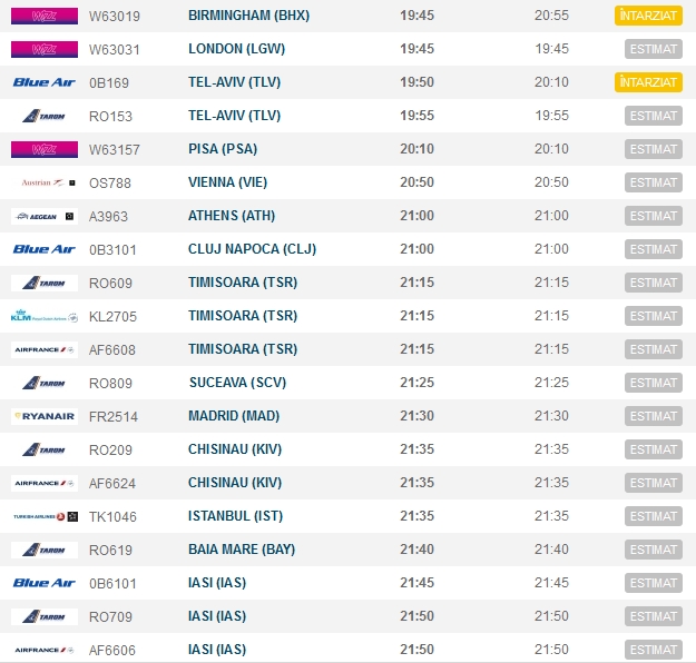 Potrivit informațiilor publice de pe siteul Aeroportului Internaţional Henri Coandă Bucureşti au avut întârzieri anunțate doar trei curse.