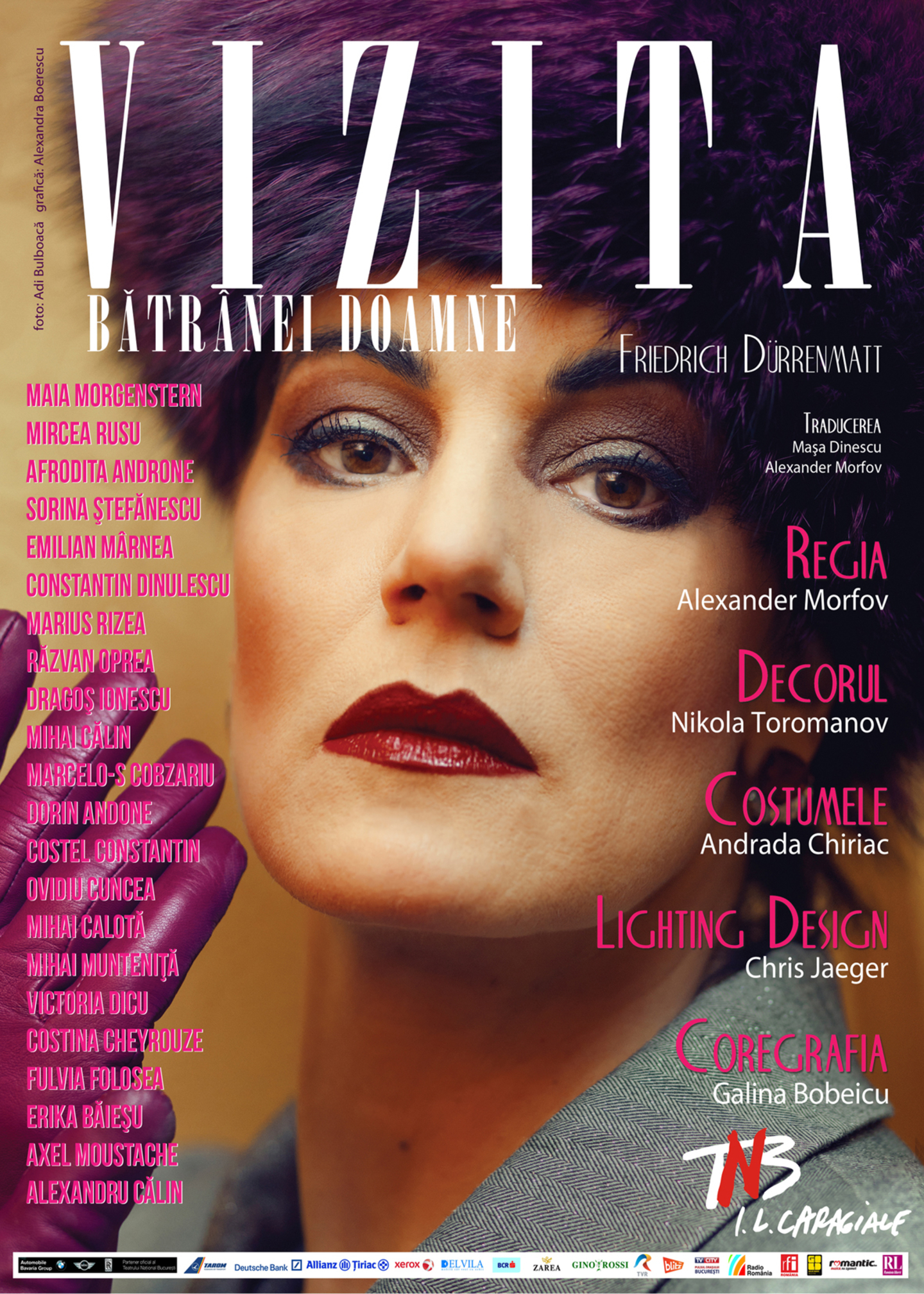 O scenografie fabuloasă recreează cu inventivitate un oraş în plină mişcare pentru a-i conferi spectatorului iluzia că se află în inima acţiunii. Amestec de comedie feroce şi dramă, Vizita bătrânei doamne este un spectacol despre vină, răzbunare şi lăcomie, susţinut de o formidabilă echipă de artişti din Bulgaria (Alexander Morfov – regia, Nikola Toromanov – scenografia) şi Marea Britanie (Chris Jaeger – lighting design) precum şi de mari actori ai Naţionalului bucureştean.” Teatrul Național București